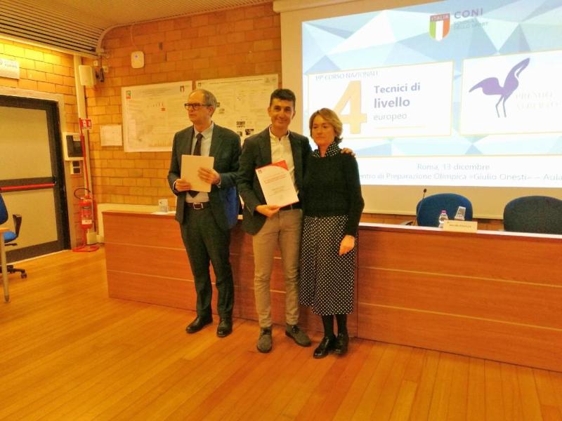 - L’ex Campione Italiano di Cross, a conclusione del 19° Corso Nazionale Coni strutturato su 7 moduli, composto da 45 partecipanti in rappresentanza di 23 Federazioni Sportive Nazionali e Discipline Sportive Associate, ha discusso brillantemente il proprio Project Work e il Poster Session trattante il fenomeno del drop-out giovanile nell'atletica leggera.